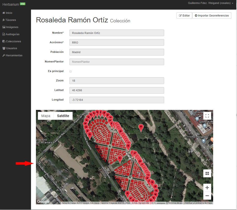 En el ejemplo de la imagen adjunta, la flecha señala los parterres y arriates georreferenciados de la Rosaleda Ramón Ortíz del Parque del Oeste de Madrid.}} | En el ejemplo de la imagen adjunta, la flecha señala los parterres y arriates georreferenciados de la Rosaleda Ramón Ortíz del Parque del Oeste de Madrid.}} | ||