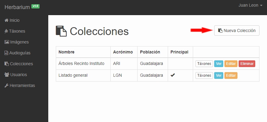 A continuación se describen los pasos para crear una colección nueva en Herbarium.