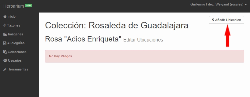 Para asociar georreferencias de la colección, hacemos clic en el botón [Añadir Ubicación].