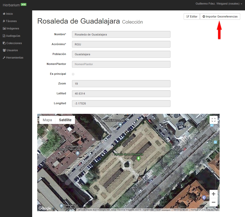 • Los táxones de cada colección sólo se pueden asociar a las georreferencias propias de la colección.
