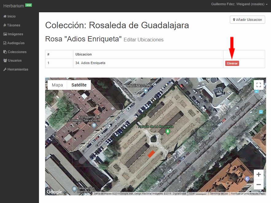 Para eliminar una ubicación, simplemente hacemos clic en el botón [Eliminar] de la ubicación a desasociar.