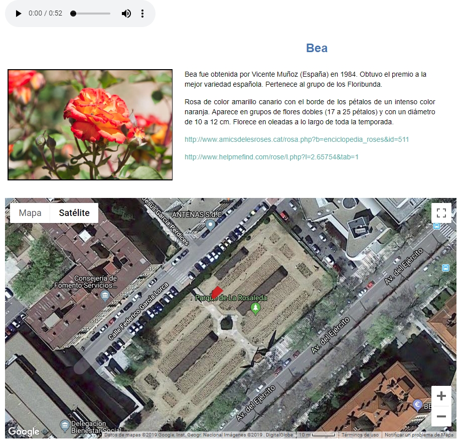Ejemplo de pliego digital con ubicación georreferenciada y audioguía